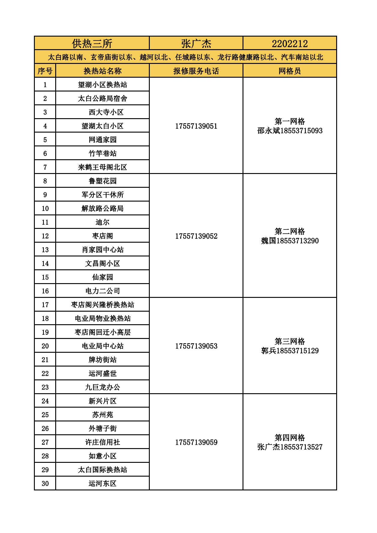 四和供熱公司各供熱服務(wù)所聯(lián)系方式及網(wǎng)格員聯(lián)系方式